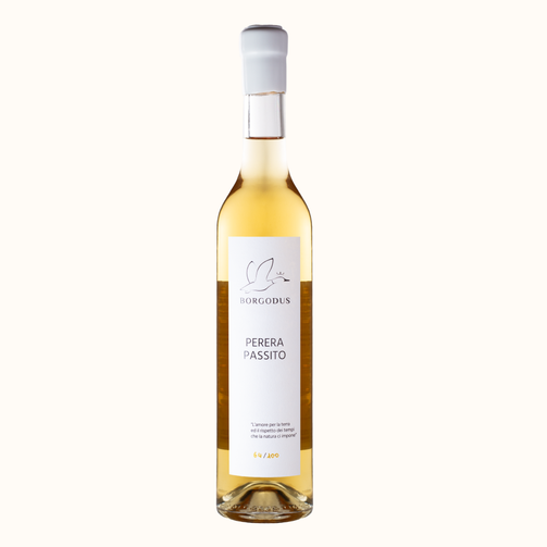 Tutto è nato un pomeriggio soleggiato di metà settembre 2022 quando, passeggiando nei duemila metri quadri di vigna indigena di Perera, vedendola brillare dorata, a mio papà Gabriele venne un’idea rivoluzionaria: appassirla. Una tecnica mai vista prima per questa varietà così vivace. 500 bottiglie firmate a mano.